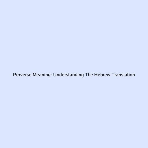 Understanding the nuances of language can be a fascinating journey, especially when exploring the Hebrew translation of words like “perverse.” The term “perverse” carries a complex set of meanings, often implying something that deviates from what is considered acceptable, normal, or morally right. In this article, we’ll dive deep into the Hebrew translation of perverse , examining its various contexts and applications to give you a comprehensive understanding. So, whether you’re a language enthusiast, a student of Hebrew, or just curious about the richness of different cultures, stick around as we unravel the layers of this intriguing word.