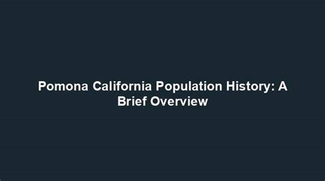 Alright, guys, we’ve covered a lot of ground today! Let’s do a quick recap of what we’ve learned about Pomona population. We started by looking at the current population size, which is around 175,000 people . Then, we explored the historical population trends, seeing how the city has grown and changed over time. We also discussed the factors that influence Pomona’s population, such as economic opportunities, housing costs, and demographic shifts. We examined the impact of population size on the community, including the demand for public services and infrastructure. Finally, we looked at future population projections, which suggest that Pomona’s population is expected to continue to grow in the coming years. Understanding Pomona’s population is super important for anyone who lives, works, or invests in the city. By knowing the current size, historical trends, and future projections, we can better plan for the future and address the challenges and opportunities that come with population growth. So, whether you’re a resident, business owner, or policymaker, I hope this article has given you a valuable insight into the dynamics of Pomona’s population. Thanks for joining me on this journey, and I hope you found it informative and engaging!