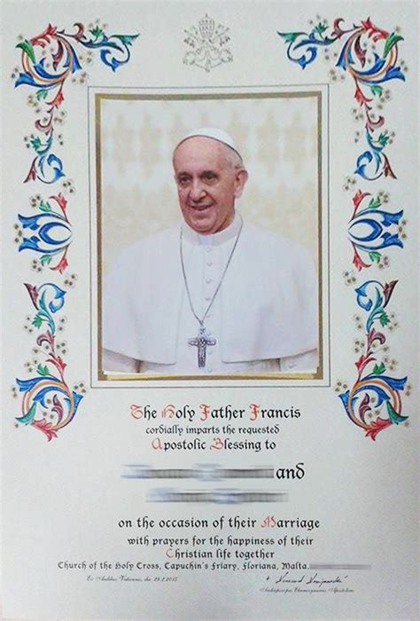 So, you might be wondering, “When exactly does a couple get a marriage blessed by the Pope?” It’s not like he’s officiating every wedding, right? Usually, a direct papal blessing on a marriage happens in a few specific scenarios, guys. One common way is if a couple has a private audience with the Pope. During these meetings, which can be arranged through various channels, the Pope might offer a personal blessing for their marriage. This is often a deeply moving experience for the couple, receiving such a personal touch from the Holy Father. Another significant occasion is when a couple receives a Papal Blessing scroll . These are official documents, usually beautifully calligraphed, that are signed by an official from the Vatican (often on behalf of the Pope) and can be requested for significant anniversaries like 25th, 50th, or 60th anniversaries, or even for weddings themselves. While the Pope doesn’t personally sign every scroll, it’s issued under papal authority and carries his spiritual imprimatur. It’s a tangible reminder of the Church’s prayer and support for the couple’s enduring commitment. These scrolls are often framed and treasured as a special memento. Think about it – having a document from the Vatican affirming your lifelong commitment? That’s pretty epic! Then there are times when a couple might be directly involved in a papal event or pilgrimage. If they are participating in a large gathering where the Pope is present and presiding over a ceremony, their presence and the context of their marriage might lead to a blessing being imparted to all present, including married couples. Sometimes, couples who are undertaking extraordinary service or witness in the faith might be granted a special audience or a specific blessing. It’s often tied to their dedication and their exemplary Christian lives. So, while it’s rare for the Pope to personally officiate a wedding, the opportunity for a marriage blessed by the Pope is very real through these avenues. It’s a beautiful way for the Church to acknowledge and spiritually fortify the sacrament of matrimony, reminding couples of the divine love and support that underpins their union. Each instance, whether a personal audience or an official scroll, serves to highlight the sanctity of marriage and the Church’s continuous prayer for all married couples to live out their vocation with joy and fidelity. The underlying principle is that the Church, through its highest office, seeks to honor and bless the union that reflects Christ’s love for His Church, offering grace and encouragement to those who commit their lives to each other in this sacred covenant.