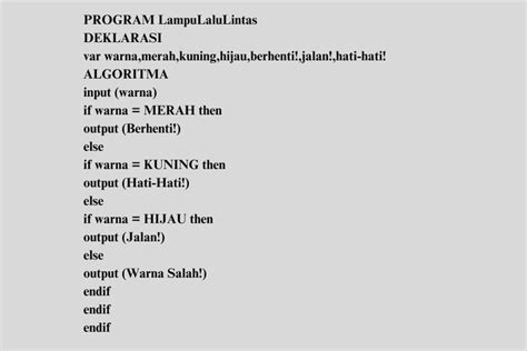 . Ini adalah contoh kata kunci yang sering dipakai dalam pseudocode, meskipun setiap orang bisa punya gaya sendiri. Yang penting,