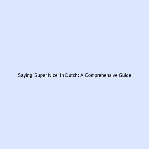 Saying 'Super Nice' In Dutch: A Comprehensive Guide