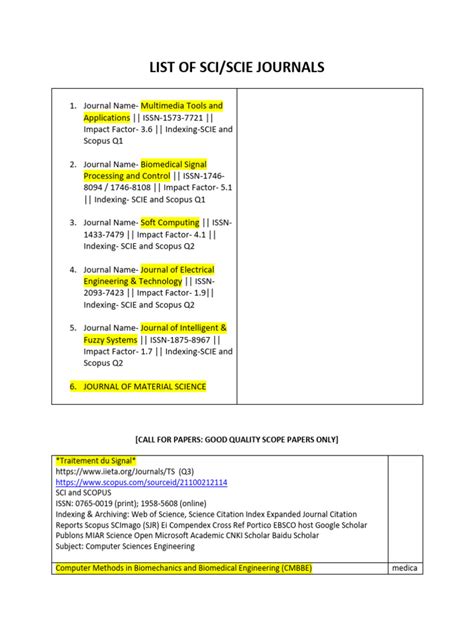 Many universities and research institutions subscribe to the Web of Science, so you may be able to access it through your institution’s library. There are also various online databases and search engines that index SCI and SCIE journals , such as Scopus and Google Scholar. While these are not official SCI/SCIE lists, they often provide information about journal rankings and impact factors. Be sure to check the journal’s website to verify that it is listed in SCI or SCIE . Some predatory journals may falsely claim to be indexed in these databases. In the journal’s