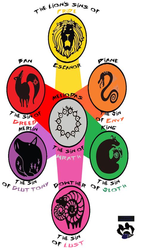 Alright, let’s kick things off with what you probably notice first: the sin crests ! These aren’t just cool-looking tattoos; they’re the defining visual markers for each member of the legendary Seven Deadly Sins. Each crest directly represents the specific sin the knight is associated with, and guys, the designs are so on point. Take Meliodas, the Dragon’s Sin of Wrath. His dragon crest? Pure power and a fiery temper, which totally fits his aggressive fighting style and his sometimes uncontrollable rage. Then you’ve got Diane, the Serpent’s Sin of Envy. Her snake symbol? It speaks to her longing for connection, her jealousy over Meliodas, and the winding, complex emotions she often deals with. Ban, the Fox’s Sin of Greed, has a fox crest. Foxes are known for being cunning and resourceful, which totally mirrors Ban’s roguish charm and his insatiable desire for… well, everything! King, the Grizzly’s Sin of Sloth, sports a bear. While sloths might seem lazy, bears can also be seen as protectors and symbols of immense strength, hinting at King’s hidden power and his deep-seated responsibility towards his kingdom and friends, even when he’d rather just chill. Gowther, the Goat’s Sin of Lust, has a goat. This one’s interesting because goat symbolism can be tied to desire, but also to trickery and independence, which perfectly aligns with Gowther’s mysterious nature and his quest for understanding emotions. Merlin, the Boar’s Sin of Gluttony, has a boar. Boars are often associated with abundance and consumption, reflecting Merlin’s insatiable thirst for knowledge and her immense magical power. Finally, Escanor, the Lion’s Sin of Pride, has a lion. The king of the jungle, the ultimate symbol of pride, dominance, and raw power – it’s a perfect match for Escanor’s incredibly arrogant yet fiercely protective personality. These crests aren’t just random drawings; they are visual summaries of each character’s core identity and their associated sin , making them instantly recognizable and deeply meaningful to the story. They are visual anchors , reminding us and the characters themselves of their past mistakes and their ongoing struggle for redemption. It’s like the animators and creators knew exactly how to convey complex character traits through simple, powerful imagery. The placement of these crests also adds to their significance – typically on different parts of their bodies, they become an intrinsic part of who they are, as inseparable as their powers and their sins. The attention to detail in these designs really showcases the thoughtfulness behind the series’ world-building. It’s not just about looking cool; it’s about storytelling through art , and the sin crests are a prime example of this done masterfully. These symbols are integral to the narrative , serving as constant reminders of the weight each character carries and the path they are on.