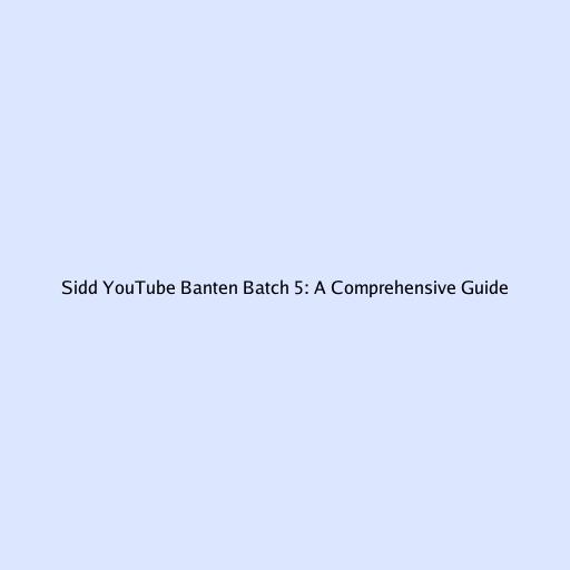 Sidd YouTube Banten Batch 5: A Comprehensive Guide