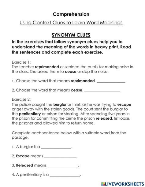 Alright, let’s break down what we’re talking about when we say synonym clues . Simply put, a synonym clue is when the meaning of an unknown word is explained or clarified by a synonym within the same sentence or a nearby sentence. It’s like the author is saying, “Hey, I know this word might be new to you, so let me give you a word you do know that means pretty much the same thing.” For example, imagine you read this sentence: “The old house was dilapidated , meaning it was in a state of disrepair.” See what happened there? The word “dilapidated” might be unfamiliar, but the author immediately provides its meaning using the phrase “in a state of disrepair,” which is a synonym. Another way it can work is more subtly. Consider this: “She was so elated after winning the lottery; she felt overjoyed and incredibly happy.” Here, “overjoyed” and “incredibly happy” are synonyms for “elated,” helping you grasp its positive and excited meaning. These clues aren’t always marked with explicit phrases like “meaning” or “that is.” Sometimes, they’re just words placed strategically to offer context. The key is to pay attention to the surrounding words and see if any of them seem to be defining or explaining the word in question. This skill is fundamental for understanding texts of all kinds, from your school textbooks to that gripping novel you can’t put down. It’s all about using the context to your advantage, becoming a word detective!
