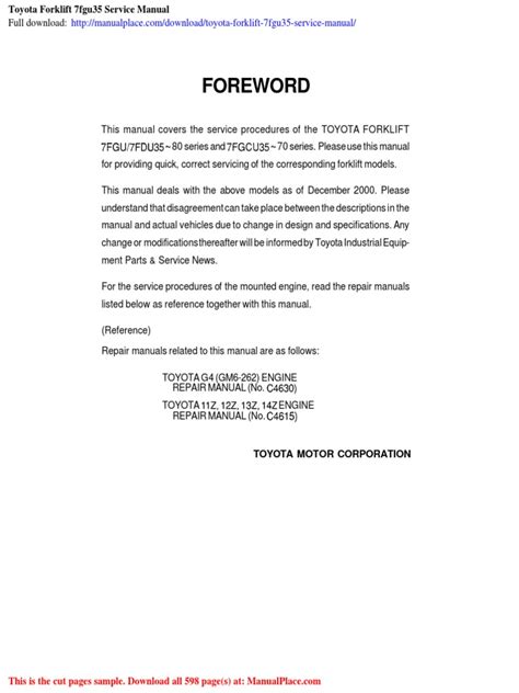 Hey there, forklift fanatics! Are you looking for the Toyota 7FGU35 Operator’s Manual ? Well, you’ve landed in the right spot! We’re diving deep into everything you need to know about getting your hands on this essential document, completely free in PDF format. This guide is designed to be your go-to resource, whether you’re a seasoned pro or just starting out with the Toyota 7FGU35 forklift. We’ll explore where to find the manual, why it’s crucial for your operations, and even some tips and tricks to get the most out of your forklift. Let’s get started, shall we?