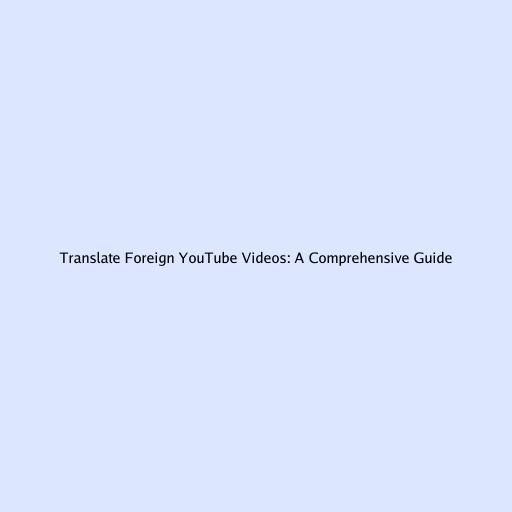 Translate Foreign YouTube Videos: A Comprehensive Guide