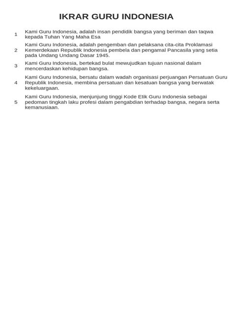 Understanding the essence of the Ikrar Guru Indonesia PDF is crucial for every individual involved in the teaching profession within the Indonesian context. It serves as a moral compass, guiding teachers in their daily interactions with students, colleagues, and the wider community. The document itself is structured to be comprehensive yet accessible, ensuring that its principles are easily understood and internalized. When we talk about the Ikrar Guru Indonesia PDF , we’re referring to the official text that encapsulates the spirit and letter of a teacher’s oath. This oath isn’t just symbolic; it carries significant weight in defining the ethical framework and professional conduct expected of educators. It’s about fostering a sense of unity and shared purpose among teachers across the archipelago, reinforcing the idea that teaching is not merely a job, but a noble calling. The PDF format makes it readily available for download, study, and reference, ensuring that its message reaches as many educators as possible. Think of it as the rulebook for being an awesome Indonesian teacher, but way more inspiring and less about penalties! It helps solidify the professional identity of teachers, distinguishing them as dedicated professionals committed to lifelong learning and student development. Furthermore, the Ikrar is often used during teacher certification processes and professional development programs, highlighting its integral role in the Indonesian education system. The principles enshrined within the Ikrar are designed to promote a holistic approach to education, emphasizing not just academic achievement but also character building and the development of critical thinking skills. Its availability in PDF format underscores the commitment to transparency and accessibility, allowing for easy dissemination and adoption by educational institutions and individual teachers alike. The document is a testament to the value placed on the teaching profession in Indonesia and its pivotal role in national development.