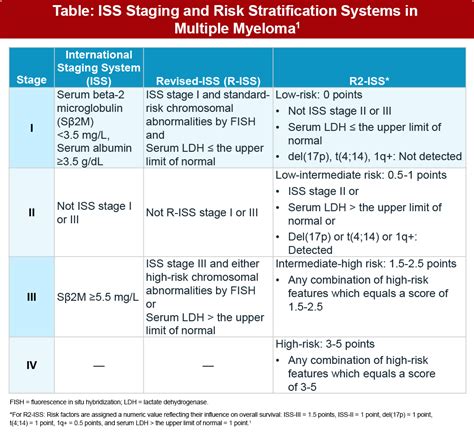 While the ISS score for myeloma has been a cornerstone of staging for years, medical science never stands still, right? Doctors and researchers are always looking for ways to refine our understanding and improve patient care. This has led to the development of revised staging systems , most notably the R-ISS (Revised International Staging System) . Think of these revisions as adding more layers of detail to the original ISS, giving an even more precise picture of the disease’s risk profile. The R-ISS builds upon the original ISS by incorporating additional prognostic markers that have been found to be significant in predicting outcomes.