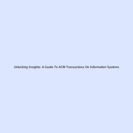 Unlocking Insights: A Guide To ACM Transactions On Information Systems