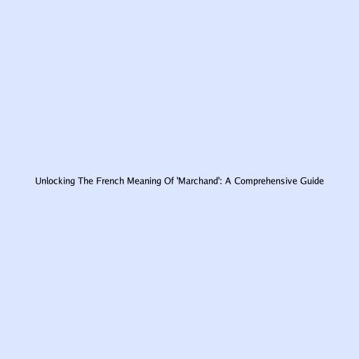 Unlocking the French Meaning of ‘Marchand’: A Comprehensive Guide