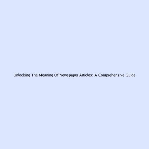 Unlocking the Meaning of Newspaper Articles: A Comprehensive Guide