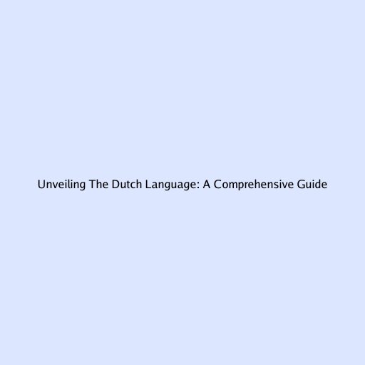 Unveiling the Dutch Language: A Comprehensive Guide