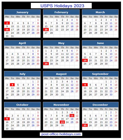 Alright, let’s get down to business with the USPS holidays 2023 schedule. The United States Postal Service observes all federal holidays. This means that on these specific days, you won’t see any regular mail delivery, and most post office locations will be closed. It’s not just a suggestion; these are official closures. Knowing these dates is crucial for planning. Miss a holiday, and you might be waiting an extra day or two for your mail to arrive. We’re talking about everything from your daily bills and junk mail to those eagerly anticipated packages. So, let’s list them out nice and clear: