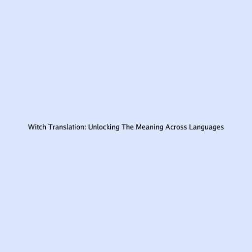 Witch Translation: Unlocking The Meaning Across Languages