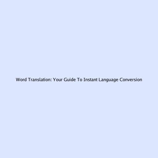 Word Translation: Your Guide To Instant Language Conversion
