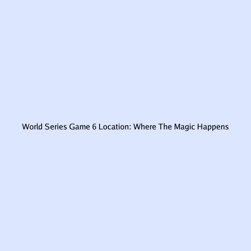 World Series Game 6 Location: Unveiling the Host Stadium